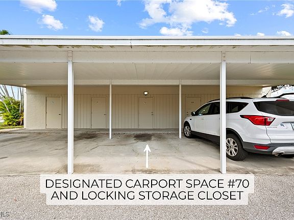 2 Bedroom, 1 Bathroom GROUND FLOOR Condo with LOW FEES in one of the MOST CONVENIENT locations you could choose in Fort Myers. Walking distance to Rutenberg Park, Publix grocery stores and pediatrician offices. Close to beaches, shopping, restaurants, medical offices and major roadways for public transpiration or easy commute. The complex has a community pool and clubhouse for meetings and parties, sidewalks and covered parking. The association dues are decreasing to $414/month in 2026 include Comcast cable/internet, exterior building care and insurance, and maintenance of the amenities and common grounds. The building boasts newer roofs and recently updated covered carports. PLUS, this is the only unit available in PHASE IV (and NO special assessments!) Updated with new bathroom vanity and blinds. Plus the AC has MERV-11 Filters for high quality air filtration. Schedule your private showing today!
