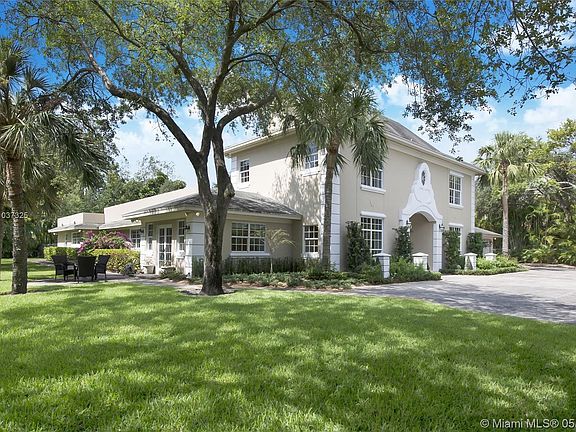 Stately and sophisticated, this 6 bedroom/5.5 bathroom is located on one of the finest streets in North Pinecrest. Double doors lead to a large foyer flanked by the formal living & dining rooms, plus additional office/playroom. Behind those spaces find the newly redone kitchen w/ high-end appliances, huge island, & gorgeous backsplash opening to the large family room w/ fireplace. Both the kitchen and family room feature vaulted, wood-beamed ceilings & French doors that lead to the patio, pool, & lush lawn beyond. Upstairs you will find the private primary suite w/ elegant bathroom & spacious closets. The remaining bedrooms are downstairs & include the in-law s suite w/ kitchen/living area, BR, & BA. Tucked away on a 41,785 square foot lot, this home truly has it all!