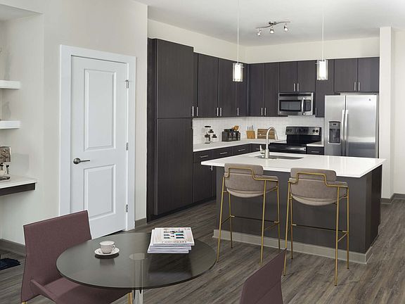 - Exterior features: , 42" upper kitchen cabinets, 4th Floor - top floor, 9`5" ceilings, Accessible, Balcony, Barbecue, Bathtub, shower combo, Bicycle storage, Brushed nickel fixtures, Built-in desk, Business Center, Classic subway ceramic tile kitchen backsplash, Clubroom, Courtyard, Decorative bathroom vanity lights, Designer bathroom hardware, Detachable shower head, Dry cleaning service, Electric Vehicle charging stations available throu, Entry coat closet, Espresso flat-front modern cabinets, Grab bars in the shower, Grey oak flat-front, modern cabinets, Hardwood-style floors throughout, Large basin sink with pull-down faucet in kitchen, Lower bathtub, Lower countertops, Meeting rooms, Pendant lights over kitchen island, Pet Park, Soaking bathtub in main bathroom, Stainless Steel GE Appliances, Stand alone shower, White quartz countertops, Wi-Fi in common areas