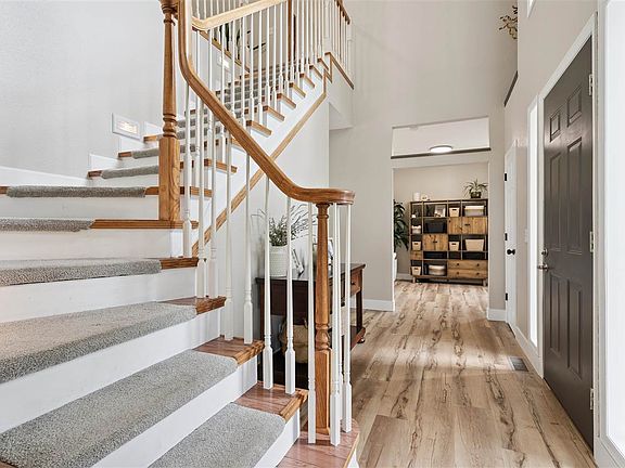 Located in a desirable, quiet neighborhood with spacious lots, located just minutes from town. This picturesque 1-acre lot is surrounded by mature trees and offers beautiful updates that blends modern upgrades with plenty of space inside and out. Inside, you’ll find all new LVP flooring on the main level, crisp white trim, and a stunning brand-new kitchen with quartz countertops and a massive island—perfect for entertaining—plus new stainless steel appliances and unique windows that flood the space with natural light. The large primary suite offers a massive walk-in closet and a spacious private bath, with all four bedrooms featuring walk-in closets for exceptional storage. The lower level is ideal for a mother-in-law suite, complete with kitchenette, rec room, and garage access! An oversized attached 2-stall garage is complemented by a huge 40x20 garage with floor drains, RV plug, and an oversized garage door—perfect for an RV, boats, or those large toys. The backyard is your own retreat with a large deck and heated pool. Located just outside city limits for LOWER TAXES yet only minutes from town. Major updates include roof (2020), siding (2021), and kitchen (2025).