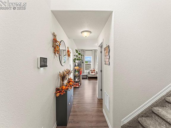 Looking for the feel of new construction without the hefty price tag? Welcome to a meticulously maintained gem in the rapidly growing northeast Colorado Springs area. This home truly checks all the boxes! Step inside and immediately notice the pride of ownership shining throughout. The main level features a bright, inviting open-concept layout, where the living, dining, and kitchen spaces flow seamlessly together. The kitchen offers modern finishes, a convenient coffee bar nook, and direct garage access perfect for busy mornings. Just off the dining area, enjoy a low-maintenance xeriscaped backyard, ideal for relaxing or entertaining. A stylish powder room rounds out the main level. Upstairs, you’re welcomed by a charming loft space. To the left, you’ll find two comfortable bedrooms and a spacious full bathroom. To the right, discover the laundry area and your very own primary retreat. The oversized primary suite boasts a luxurious 4-piece bathroom with quartz countertops and a generous walk-in closet your personal oasis at the end of the day. With move-in ready convenience, a fantastic location in District 20 schools, and quick access to the Powers Corridor for shopping, dining, and more, this home truly has it all. Don’t miss your chance, schedule your showing today!