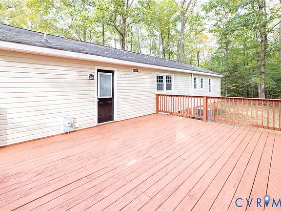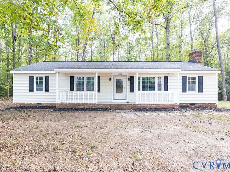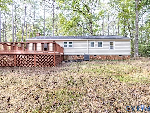 Charming Ranch with Country Feel! Tucked away on a quiet wooded cul-de-sac just off the bustling Hull Street and Bailey Bridge corridor, this beautifully updated 3-bedroom, 2-bath ranch offers the perfect blend of peaceful country charm. Step inside to 1,368 sq ft of fresh, move-in ready space featuring new LVP flooring throughout and fresh paint in every room. The inviting country front porch and a storm door welcome you with great natural light, while the spacious living room offers a warm ambiance with its large picture window, crown and chair rail molding, and coat closet—perfect for welcoming guests. Open flow seamlessly into the cozy family room boasting a cast iron wood-burning fireplace insert, ideal for those cooler nights and winter. The heart of the home is the fully renovated kitchen, featuring gorgeous quartz countertops, shaker-style cabinets, stainless steel appliances, recessed lighting, a large eat-at island, and a eat-in dining area—ideal for entertaining or casual family meals. The primary room includes crown molding, a double-door closet, and your own private ensuite bathroom complete with a walk-in shower with seat and single sink vanity. Two additional bedrooms offer double-door closets, overhead lighting, and one includes crown molding. A nice touch for family, guests, or a home office. The updated hall bath includes a double sink vanity, tub/shower combo, and a linen closet and an additional hall linen closet to help keep everything organized. You'll also find a dedicated laundry room just off the kitchen with direct access to the large back deck, ideal for relaxing evenings or entertaining outdoors on those wonderful Virginia nights. The detached storage shed provides plenty of space for your lawn tools and outdoor equipment, and the wooded lot offers both privacy and a beautiful natural backdrop. Don’t miss this opportunity to enjoy a like-new home in a serene setting with great proximity to shopping, dining, and commuter routes! A great location near Hull Street & Bailey Bridge Rd.