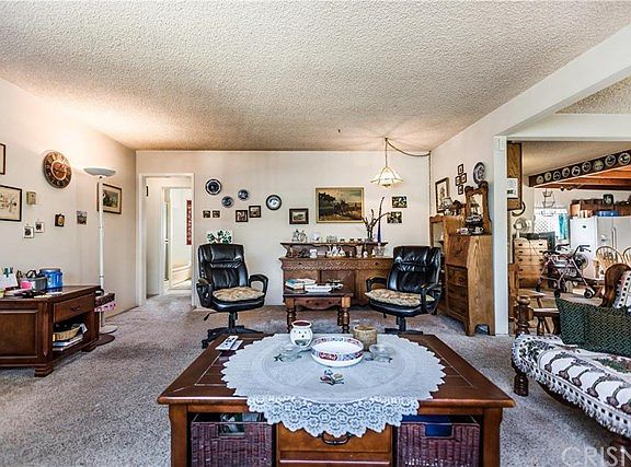 Terrific One Story with a Detached Two Car Garage, a Long, Gated Driveway, a Large Storage Shed, All on a Low Maintenance Lot!! This home offers a formal living room with a huge dining area, a step down, remodeled kitchen (approx. 30 years ago) with a vaulted "knotty pine" ceiling and lots of custom cabinetry, a laundry room of which a portion is pantry, a master bedroom w/folding closet doors, a 2nd and 3rd bedroom, a full bath with a separate shower and tub, and a half bath near the laundry room. Sliding doors lead to a patio deck and a detached, enclosed "room" that can house a hot tub, a two car garage, loads of hard scape, a portable "canopy" style patio cover, and more! Upgrades include a copper repipe, a newer wall (electric) heat and A/C pump, a floor furnace, windows that were replaced approx. 35 years ago, a newer roof (approx. 11 years ago), blinds,neutral paint and carpet and laminate flooring in the kitchen. Close to shopping and the freeway, this home is a must see!