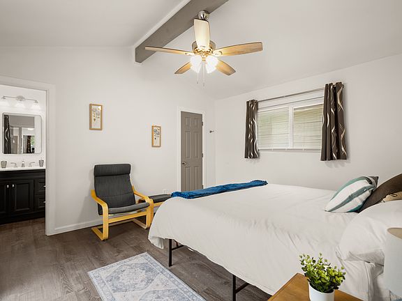The home features a bright open layout, comfortable living area, smart thermostat, and a fully equipped kitchen with cookware, dishes, small appliances, and everything needed for day-to-day convenience. Both bedrooms are furnished and include high-quality bedding, nightstands, lamps, and closet storage.