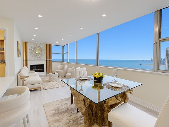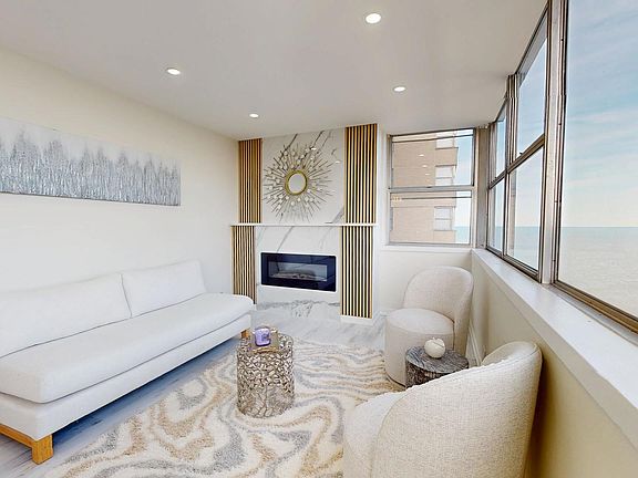 Enjoy the calming sounds of Lake Michigan's waves right outside your window, with the added beauty of starry nights and city lights in perfect harmony. Wake up each morning to breathtaking sunrises, all from the comfort of your own bed. This home offers a unique blend of peaceful lakefront living and the vibrant energy of the city-an exceptional place to call your own. No, you are not dreaming. Welcome to your new luxurious retreat! This is an unbelievable opportunity to move right into this tastefully designed, sun-drenched unit with a million dollar view. Upgrades include new flooring, a brand-new kitchen with stainless steel Appliances, white shaker cabinets, luxurious quartz counters and backsplash, a large peninsula, designed for the entertainer in you. Bathroom features all new spectacular tiles, fixtures, and vanity. After a hard day of work, you can unwind by the ambient electric fireplace which you can use year-round. Enough about this stunning and cozy work of art, let me tell you about its prime location, location, location! 6301 N Sheridan is just steps away from the beach, parks, lake, public transportation, lakeshore drive, and a short walk to Loyola . This is a well managed building with 24-hour door staff.