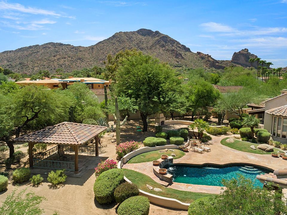 Stunning Camelback views in the hear of Paradise Valley, this home is available for lease in the exclusive community of Finisterre. Saltillo tiles throughout with carpeted bedrooms, vaulted ceiling and two way fireplace in the impressive living area. This home has classic Arizona charm and elegant back yard- perfect for entertaining! Vacant and ready to lease! Landscaping and pool service included. Guard gated.