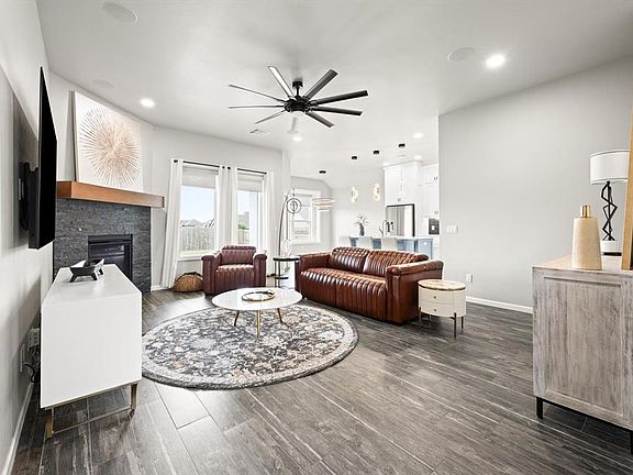Welcome to Deer Creek Park—one of Deer Creek’s most sought-after communities, where thoughtful design meets everyday comfort. This beautifully crafted home features an open-concept layout with seamless flow between living, dining, and kitchen spaces, all enhanced by abundant natural light and stylish wood-look tile flooring throughout the main areas. The spacious kitchen is designed to impress with gleaming countertops, tile backsplash, walk-in pantry, gas range, and a center island with counter seating—perfect for gathering with family and friends. The large great room offers versatile furniture arrangements, anchored by a cozy corner fireplace and surrounded by oversized windows that bring the outdoors in. The private owner’s suite is a relaxing retreat, showcasing a spa-like bath with a freestanding soaking tub, double vanities, and a massive walk-in closet. Every corner of this home reflects quality finishes, modern design, and attention to detail. Enjoy evenings under the covered back patio or take advantage of the community amenities, including a neighborhood pool and playground. With its open, light-filled layout and contemporary style, this home offers the perfect blend of comfort and livability. Additional features: Inground storm shelter in the garage; Surround sound speakers in main living and primary suite; Epoxy garage floors; Custom shades and drapes. Located in the sought-after Deer Creek neighborhood and zoned for top-rated Deer Creek Schools, this home blends lifestyle, location, and comfort into one incredible opportunity. Welcome Home!