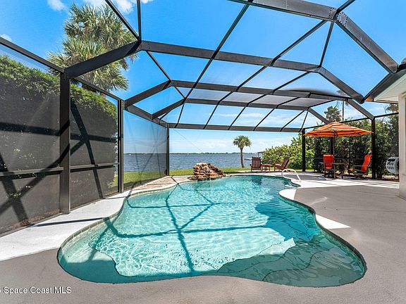 RIVERFRONT POOL HOME! This beautiful single-family home features 2720 sq ft of living space, 3 beds, 2.5 baths, large laundry room, a 3-car garage, and fabulous river views. Located in the coveted gated waterfront community of Portofino Bay and situated on over ½ an acre corner lot with community dock and your own private boat slip, this home boasts many recent updates. All the landscaping plants were recently updated and beautiful rock replaced in all the landscaping beds. One of the few homes that boasts a three-car garage, you are greeted with a beautiful, huge newly pavered driveway and new exterior garage lights. The private pavers courtyard entrance leads to the double front doors that open into the foyer and the formal dining room. The home boasts new plantation shutters throughout, including the garage, and new hardwood floors in the bedrooms. Spacious primary suite with gorgeous mahogany wood floors, sunrise views, and a large en suite bathroom with walk-in shower, jetted tub and double sinks. The gourmet open kitchen with breakfast nook boasts updated quartz counters, a new Wolf gas range, Sub-Zero refrigerator, new Wolf microwave, new Thermador Dishwasher, large island, and tons of storage, overlooking the expansive great room with vaulted ceilings. Quad pocket sliders open fully to the private patio with a new summer kitchen, sparkling custom pool with waterfall & large sundeck overlooking the Indian River-Perfect for entertaining, watching the launches and allowing you to truly live Florida's waterfront lifestyle. An absolute must see!