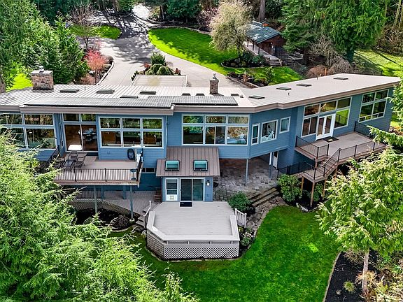 On 5 serene & secluded acres, custom built in 2014, and less than an hour to Seattle this stunning home is a true retreat. Floor-to-ceiling windows showcase breathtaking panoramic views! Expansive open floor plan invites you to entertain in style. Hickory hardwoods, 2 stone fireplaces, massive kitchen with a spacious island, bar seating, and walk-in pantry for effortless living. Owners suite features his & hers w/i closets, lower private entry leads to a versatile 1-bed/1-bath space plumbed for kitchen-perfect for multi-generational living or in-law suite. Multi-level Trex decks, heated bath floors, RV Parking, 4-stall hobby barn, 36 solar panels, 3 car garage, porte-cochere entry, this home offers privacy, comfort & endless options.
