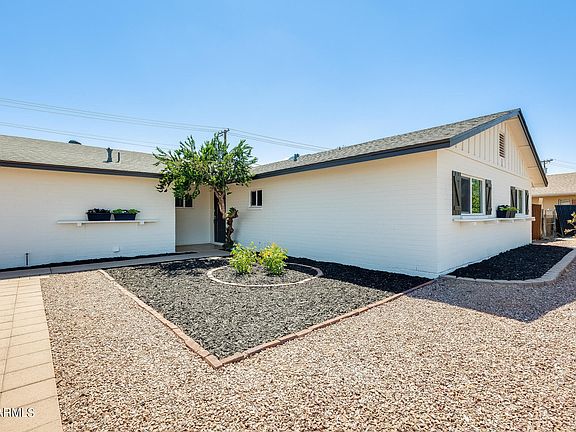 Renewed, spacious 4 bedroom, 2.5 bath home. Outside has been freshly painted with a welcoming pallet. Floorplan has been opened up, large entryway open to the great room and kitchen. White cabinetry topped with quartzite countertops, backsplash for depth, floating shelves for charm, finished with stainless steel appliances. Beyond the kitchen is a flex space, 1/2 bath, and laundry room relocated inside. Head to the other side of the house to the bedrooms and guest bath. Built in linen closets line the hallway and guest bath. Storage galore! Huge corner lot with giant covered back patio. 2023 - Full sewer replacement, new roof, new windows, full interior remodel.