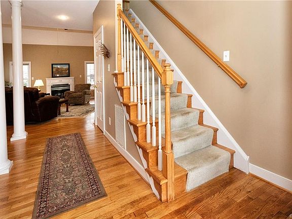 CUSTOM BUILT WITH WATER VIEWS and only steps away from Wooklake walking path to Boyces Cove. This home is absolutely charming. The wood floors are gorgeous and they carry into the FIRST FLOOR MASTER BEDROOM. The sunny master bedroom has a large sitting area and an en-suite bathroom that includes his & hers vanities, separate shower and garden tub. The open concept dining and living space is complimented by 3 skylights that allow natural light to shine in. For casual dining there is a breakfast room off the spacious kitchen. The kitchen is adorned with Cherry Wood Cabinets, tons of counter space and a walk-in pantry that is a chef's dream. Upstairs the bedrooms are a nice size. There is a walk-in attic that is great for storage and could be finished to become a 5th bedroom or a rec room. The 2 Zone HVAC including duct system replaced approx. 3 years ago. Crawl Space is conditioned. All of this and LOCATION LOCATION LOCATION. Woodlake has 13 miles of walking trails around the community and The Swift Creek Reservoir, 16 playgrounds, 3 outdoor pools, tennis courts and volleyball courts, and MORE. This one is going to sell fast!