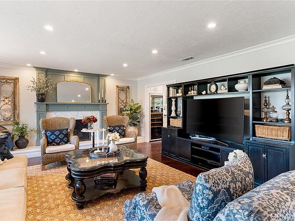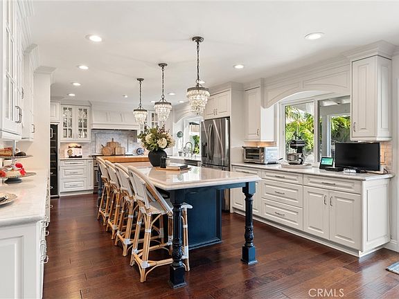 Welcome to 6302 Athena Drive, where thoughtful design and timeless style meet in this beautifully upgraded 4-bedroom, 3-bathroom home located in one of Huntington Beach’s most desirable neighborhoods. Step into the inviting living room, where natural light pours through newer windows, highlighting the rich crown molding, 5-inch baseboards, recessed lighting, and a striking fireplace with a custom marble hearth and decorative wood mantel, creating the perfect place to relax or entertain. The heart of the home is the chef-inspired kitchen featuring a Fisher & Paykel 6-burner gas range with, separate griddle, double oven, elegant marble countertops, custom tile backsplash, and a full size Arte Vino wine refrigerator. Envision gatherings or enjoying a meal around the amazing marble kitchen island, complete with stunning pendant lighting. The open layout flows easily into the dining space with stunning chandelier, ideal for gatherings and making memories with family and friends. Downstairs, you’ll find a full bedroom and a remodeled bathroom—perfect for guests or multi-generational living—as well as a beautifully appointed laundry room with custom built-in storage. Upstairs, the spacious primary suite offers a peaceful retreat with a custom barn door leading to the, fully remodeled, ensuite bathroom featuring marble finishes and designer touches. Two additional bedrooms and a third remodeled full bathroom provide ample space for family, home office, or flex space needs. Ceiling fans have been added to each upstairs bedroom for year-round comfort. Step outside to your private backyard oasis with a Pebble Tec saltwater pool, freshly acid-washed and painted for a clean, modern finish. The built-in DCS BBQ and spacious deck are ready for summer gatherings, relaxing weekends, and outdoor coastal evenings under the stars. Additional upgrades include a new roof backside of the home (2024), upgraded electrical panel (2023), a 220V outlet, EV car charger, reverse osmosis water filtration system, new interior doors, 5 inch baseboards, dimmer light switches, loads of storage, and double-pane windows throughout. With custom tile work in every bathroom and the kitchen, this home offers both beauty and function. Located just steps from Lark View Park and close to top-rated schools like Golden View Elementary, HB Central Park, the Sports Complex, and Bolsa Chica Wetlands—this is coastal living at its finest.