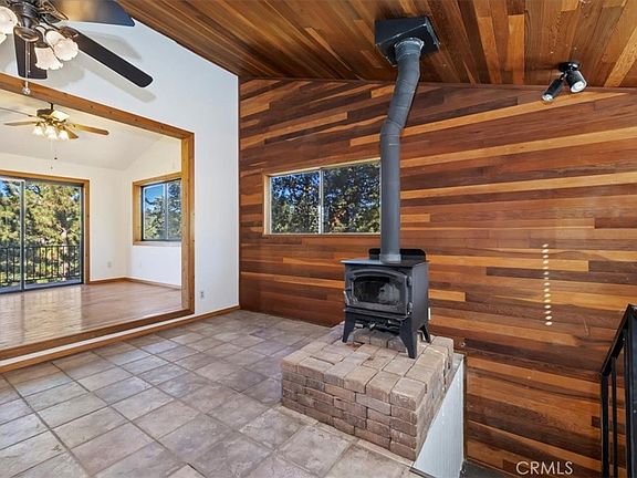 The Open Family Room has a cozy Wood Burning Fireplace. There is Wood T & G Ceilings and new Laminate Wood Like Flooring. In the Attached Formal Living Room, you will find a Slider that opens onto a Deck with Striking Views of the Forest and Mountains. Downstairs you will Find Two Master Suites. They are Separate and on opposite sides of the home. On the Way to the Shed, you will find an oversized Basement which can easily become a Gameroom! Laundry Room is adjacent. You will love the Peaceful Setting and Cozy feel of this home. 3 Miles above Forest Falls.