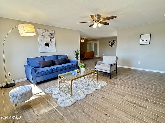 Beautifully updated 4 bedroom home on premium corner lot with a large RV Gate! Two spacious living rooms are perfect for entertaining guests, and extra privacy with the family. This home also features a lovely welcoming courtyard. The interior features tall ceilings, neutral paint tones, ceiling fans, sleek wood-look tile flooring. Cook your favorite meals in the kitchen, complete with SS appliances, abundance of cabinetry, and a convenient pantry. The master bedroom has new plush carpeting, a mirrored door closet, and a pristine private bathroom. Out the back, you have an RV Gate for your large toys, fire pit, a storage shed, and lots of space for outdoor activities. Great location as it's also across a school ! Close to shopping, dining, and major highways.This gem is move-in read