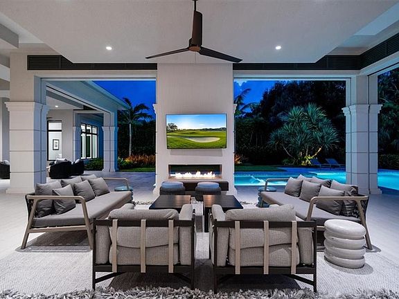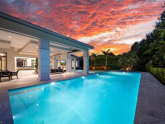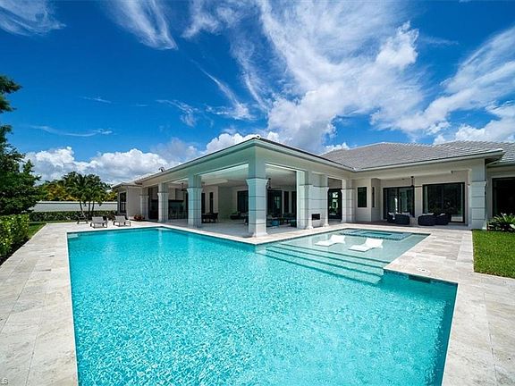ELIGIBLE FOR IMMEDIATE GOLF MEMBERSHIP. Welcome to the epitome of luxurious leisure living – a masterful coastal contemporary completed by McGarvey Custom Homes in 2022. Nestled within the prestigious, gated golf course community of Quail West, this immaculate 4 bedroom plus den, 6-bathroom estate is designed to seamlessly blend modern elegance with Florida’s relaxed lifestyle. Over 5,900 square feet of expansive living space, exquisitely finished with bespoke details throughout invites you into a world of high-fashion, high-tech living where every element caters to your every need and desire. Soaring ceilings with intricate beam work and detail grace every room, while wood floors flow throughout. The open-concept living and entertaining areas transition effortlessly into over 4,500 sq ft of outdoor space, including a 2,300 sq ft covered lanai with an outdoor kitchen, bar, and a cozy seating area with a fireplace. The space is centered around a breathtaking saltwater pool and spa, offering the perfect setting for both intimate gatherings and grand celebrations. The home’s centerpiece, the kitchen, is testament to both form and function, featuring a striking quartz waterfall island, top-of-the-line Wolf and Sub-Zero appliances, and a full suite of built-in automated conveniences designed to make meal prep an experience in and of itself. Each bedroom boasts an ensuite bath and walk-in closet. The master suite doubles as sanctuary with a luxurious spa-worthy bathroom, a dedicated morning bar area, and two spacious walk-in closets. Countless upgrades and thoughtful integrations nearly elevate the home to fantasy status. For effortless control when at home or away, there’s a smart home automation system and security system with cameras. Hurricane shutters and screens, a whole-house generator, a mosquito control system, cane toad fence and a lightning strike pole on the roof to add peace of mind. Other amenities include: surround sound, two tankless water heaters, a central vac, plus A/C in main house, guest rooms, wine room and two garages. Car enthusiasts will also appreciate the two car lifts in the garage. Beyond the residence, Quail West Golf and Country Club is enriched with abundant amenities including championship golf courses, exquisite dining options, tennis, pickleball, bocce and so much more. You are only 15 minutes from the pristine shores of the Gulf of Mexico and 20 minutes from either Regional SW Florida Airport or Naples Airport, if flying private. This is Florida living at its best.