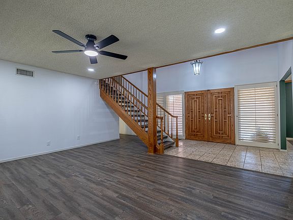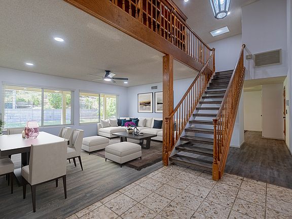 Welcome to this stunning two-story 5-bedroom, 3 bathroom home offering both charm and modern comfort. From the moment you enter through the elegant double doors, you'll find thoughtful features throughout including a cozy den with fireplace that opens to the backyard, a built-in wooden bookshelf, and elegant floor tiling that adds a touch of sophistication.