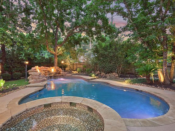 Must See! Custom Estate Home with high-end finishes, brick wine room featuring 3 sets of custom doors that allow entertaining with ease, gourmet kitchen with lots of counters, cabinetry, beamed vaulted ceilings, double iron doors, red brick, Porte cochere, study with built-ins, sweeping iron staircase, both formals, plantation shutters, primary suite and stunning bath on first level! Upstairs, 3 beds, 2 updated baths, and flex space for additional study or game room. The real show-stopper is the oasis outback! Complete with fireplace, outdoor kitchen, pool and spa. Minutes to The Woodlands and TX99 for easy commute! Make your appointment today! Income 4x rental rate, 2 years of good rental History, no evictions, Good credit with no collections. No Criminal with Drug or Family violence, no felonies for past 10 years