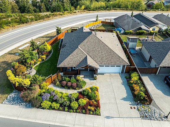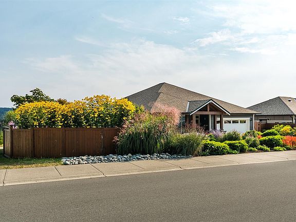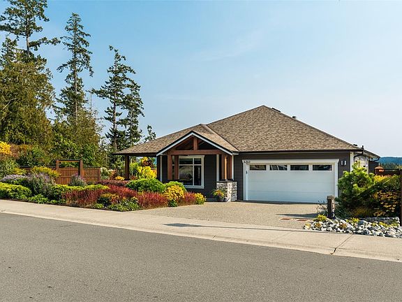 Discover this unique, 1613 sq ft, 3-bedroom, 2-bath home built with quality and efficiency in mind. Enjoy an elevated position with ocean, mountain, and forest views. The open, single-level design features 9-foot ceilings and abundant natural light. The kitchen boasts a full suite of Miele appliances incl. induction cooktop and convection wall oven, a large island, custom Baltic Birch cabinetry, and Caesarstone countertops. ELFA storage systems for flexibility. The main bedroom has two large closets, one walk-in, with customizable storage. The other two bedrooms feature built-in cabinetry and space-saving wall beds, with one also including a custom office desk. 5+ ft crawlspace under entire home for temp-controlled storage. Deer resistant plantings out front, private, fenced rear garden offers year-round enjoyment, including a garden shed, a glass-walled garden, and 9-zone irrigation. Unique residential-rural setting, short walk to trails along the Sooke River and local amenities.