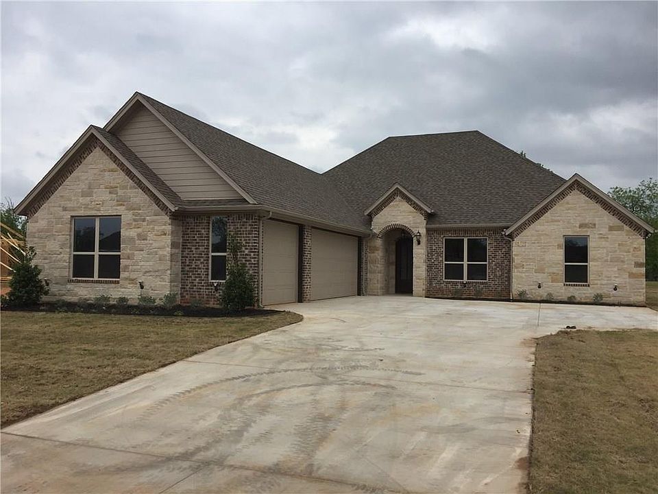 New build is 4 bedroom, 2.5 bath with golf cart garage as well as large living room and open concept kitchen and dining and living area. Corner fireplace with large windows opening to greenbelt and covered back porch. House sets with front facing west so great afternoon and evening entertaining for comfort. Utility room connects to Master bedroom closet for easy laundry duty. This home will be landscaped with sprinkler system and lawn. Just down street from Pecan activity center, pool, and stores and bank.