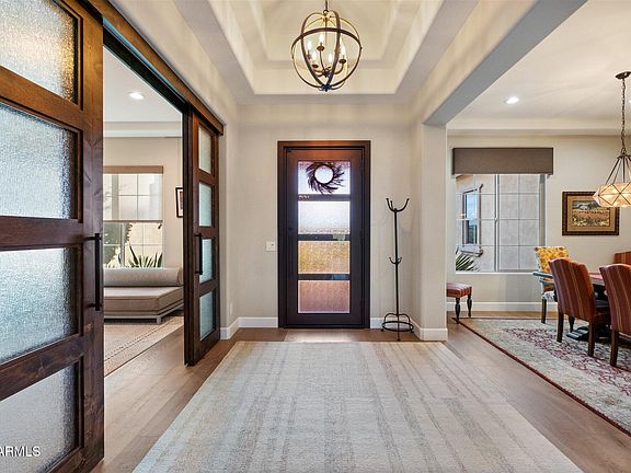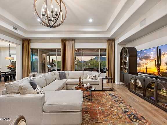 Welcome to the premier lot in the highly coveted, gated Lone Mountain community—where privacy, sophistication, and unobstructed Black Mountain views define everyday living. Set on a quiet, open-space backdrop and fully renovated in 2023, this single-level 4-bedroom, 3.5-bath residence offers 3,990 sq ft of refined living and an oversized 4-car garage and driveway. Every room has been upgraded and improved which reflects the elevated finishes and thoughtful craftsmanship expected from a true luxury home. Step inside and immediately appreciate the home's impeccable orientation, with Black Mountain perfectly framed through the main living windows. The layout begins with a welcoming den and formal dining room, then transitions past a sleek coffee bar into the expansive great room—where panoramic desert and mountain views fill every window. Designed for both style and performance, the newly updated kitchen features extensive quartz countertops, abundant cabinetry, and elite appliances, including two built-in Sub-Zero refrigerator/freezers, Thermador gas range, double ovens, 2 dishwashers, warming drawer, dual 300-bottle wine refrigerators, and a spacious pantry. Perfectly positioned for seclusion, the primary retreat offers serene mountain views, a custom-designed walk-in closet, a dedicated sitting or fitness area, and its own private patioan ideal space to unwind. The separate guest wing includes an additional den along with three generous bedrooms. Bedroom 2 has a private en-suite bath, while Bedrooms 3 and 4 share a well-appointed Jack-and-Jill bathroom. Situated on a 15,600 sq ft lot, the backyard provides remarkable privacy and endless potentialwhether envisioning a pool, gazebo, multiple fire features, or custom outdoor spaces. Enjoy covered and open-air patios, a built-in BBQ, and low-maintenance desert landscaping, multiple turf areas, all curated for effortless outdoor living. All of this is just steps from the 10-acre community park and scenic walking paths, and minutes from top-rated dining, shopping, golf, hiking and biking trails, Cave Creek's Main Street, the Carefree Sundial Shops, and more. Experience the views, the setting, and the lifestyle that make this home truly one of a kind.