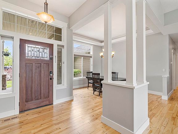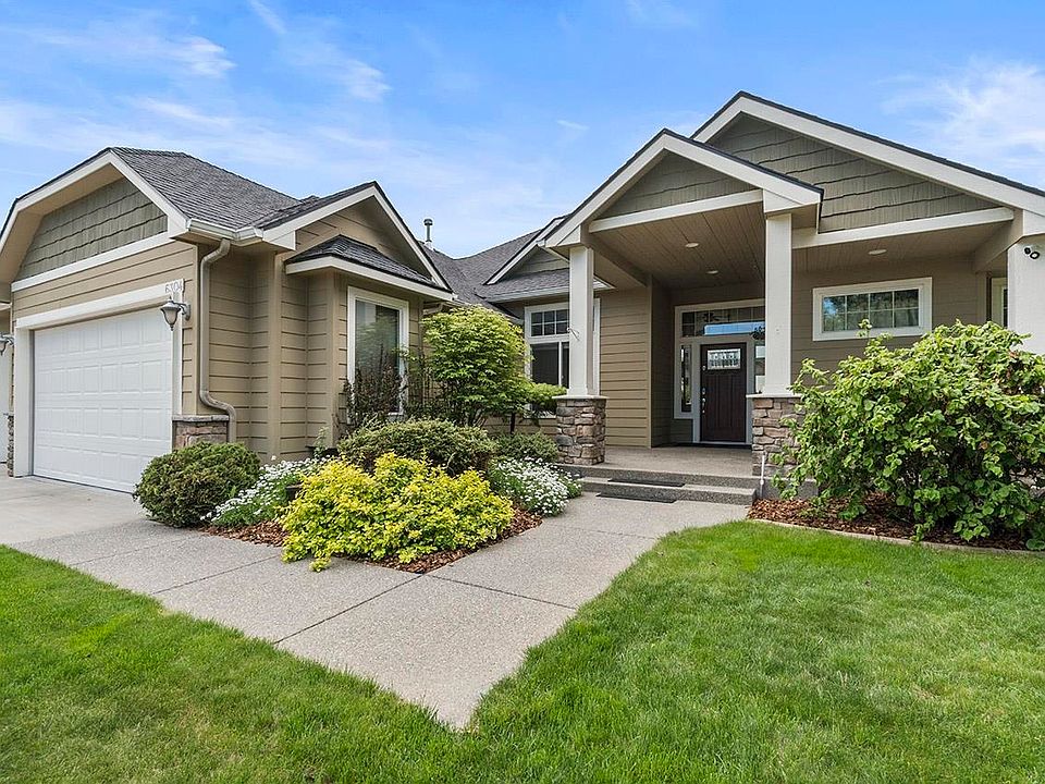 Beautiful Eagle Ridge Rancher with Views! This Morse Western stunner boasts an open floor plan with tons of natural light and vaulted ceilings. Main floor features hardwood floors, large living room with oversized windows and modern gas fireplace, formal and informal dining, laundry room, kitchen with stainless appliances, granite countertops, center island and a pantry! Primary suite offers a full bathroom, with separate shower and soaking tub, a huge walk-in closet, and double sinks. Daylight basement with 9' ceilings, second family room with gas stove, 2 more bedrooms, and an awesome exercise room/possible 5th bedroom. Entertain and enjoy the views on the large, covered back deck, or the fully fenced backyard with custom landscaping, a patio, and tranquil pond! Close to the park and walking trails, and located just minutes from the freeway and downtown Spokane. It doesn't get much better than this! Make an appointment to see this amazing home today!