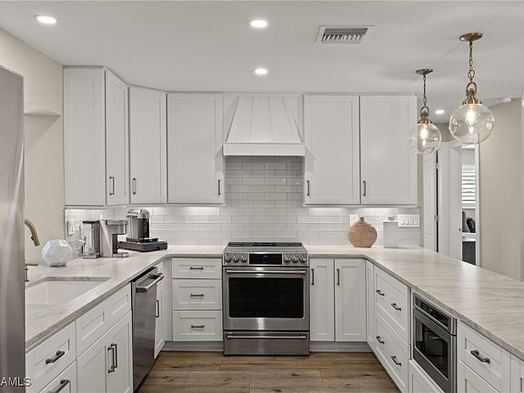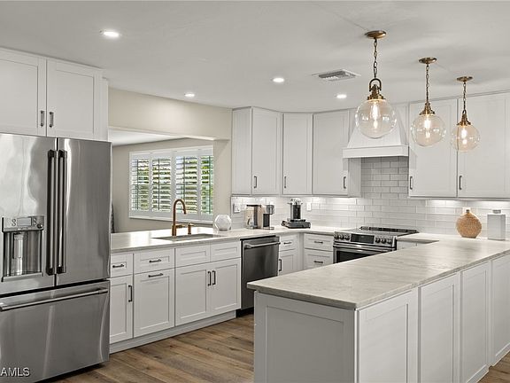 $20,000 PRICE DROP! Experience modern living in this beautifully remodeled 3-bedroom, 2-bathroom home on a spacious 0.30 acre lot in Fort Myers, FL. Every detail has been thoughtfully upgraded, featuring large luxury vinyl plank flooring, quartzite countertops, and matching vanities for a seamless, high-end look. The kitchen is equipped with GE Café appliances, complemented by custom cabinetry and recessed lighting throughout. Drive into your new paver driveway and step out to the new covered patio, surrounded by all-new sod, landscaping, and a fenced-in yard with lush Clusia plants for privacy. Enjoy the bonfire area and ample space to add a pool. The home is built for efficiency and durability with a 2019 roof, 2019 AC, impact windows and doors, spray foam insulation, and a new hot water heater. Additional upgrades include plantation shutters and custom closets, enhancing both style and functionality. Located in a prime Fort Myers neighborhood (NO FLOOD ZONE) this home is move-in ready with no detail overlooked. Schedule a showing today!