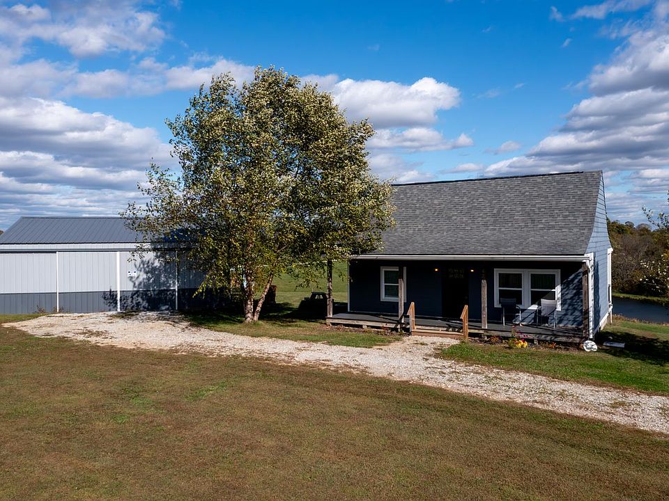 Tucked along the quiet stretch of State Road 129, this charming 2-bedroom, 1.5-bath home offers the perfect blend of comfort and country charm. This 1.5-level home welcomes you with a covered front porch and a relaxing back porch ideal for morning coffee or evening sunsets.The property sits on 1.166 peaceful acres and comes complete with a 28x32 garage with concrete floor and electric-perfect for a workshop, storage, or hobbies-plus an 8x10 shed for your tools and extras.Just minutes from downtown Vevay,the Ohio River, and Splinter Ridge Wildlife Area, you'll love the quiet country setting with the convenience of town close by. Whether you're starting out, downsizing, or looking for a weekend escape, this property is a little slice of Indiana countryside waiting for you.