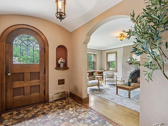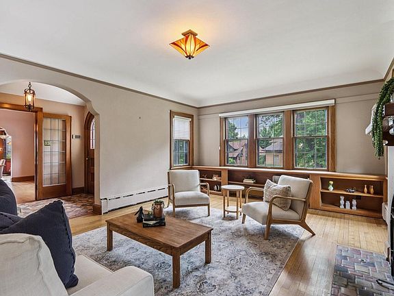 Main floor bedroomClassic detailsFlooded with natural lightFrench drainsArched stone entrywayBrand new stone patioDining with built-ins