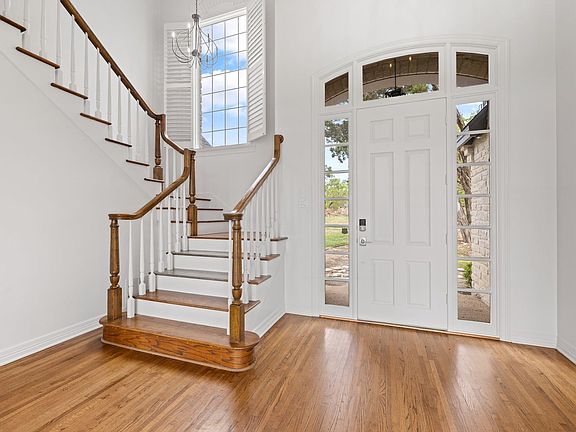 Recently renovated including new roof and A.C. This 4 bedroom, 4 bath home is spacious and has high ceilings, tons of windows, hardwoods ; tile ; new carpet flooring, recently painted interior and exterior, formal living and dining, kitchen / dining / living combo, 2 fireplaces, tons of closets and more. Attached 3- car side garage. Sits on a lot that is 1.5 acres and the views are extraordinary. Feeds to fabulous Leander ISD schools: River Place Elementary, Four Points Middle School and Vandergrift High School.