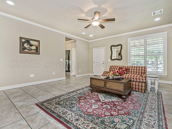 Discover style and comfort in this 3-bed, 2-bath Town Square garden home. Ideally situated on a cul-de-sac, this home is located in Canyon ISD (West Plains High School). It features a surprisingly spacious yard, a storage building, and a seamless floor plan with plantation shutters.