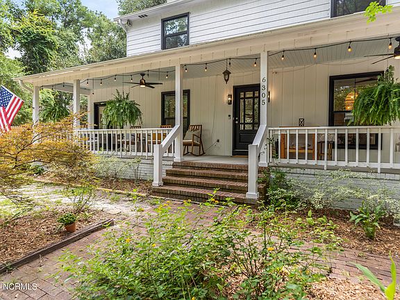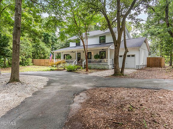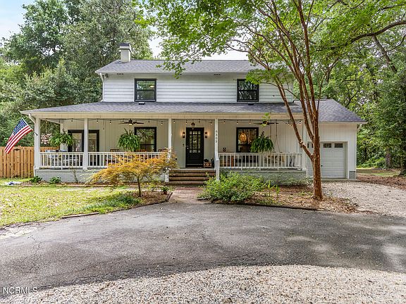 This charming 1-acre oasis has 4-bedrooms, 2.5 baths with a storybook, rocking chair front porch you will fall in love with! Step inside to see the beautiful, restored hardwood floors. The living room exudes warmth and comfort, made even cozier with a recently converted gas fireplace. Just off the living room awaits a sunroom with tall vintage windows. The remodeled kitchen boasts new cabinets, upgraded lighting, new appliances, shiplap, updated electrical and plumbing. Cooking and entertaining are a joy in this beautifully appointed space. In 2020 major renovations/improvements were made to include some expensive items such as a new well and pump, new roof, gutters and gutter screens/covers, new windows throughout the home (excluding the sunroom), new HVAC downstairs, new hot water heater, new electrical and plumbing, and bathroom upgrades. Upstairs, the renovations continue with new flooring, bathroom upgrades, plumbing and electrical. There is a whole house water softener and reverse osmosis system, providing you with unparalleled water quality. Offering a lot of natural light and a tranquil vibe for any family seeking a permanent home or if you're looking to invest consider an AirBnB, it's perfect for either. This home is not just a home; it's a retreat from the hustle and bustle of everyday life and comes backed with a 1-year Home Warranty. Just 11 mins to Carolina Beach, 21 mins to Wrightsville Beach, 27 mins to Ilm Airport, 20 to Downtown Wilmington. Ask for a list of improvements, pictures of septic, well and come take a tour.