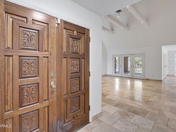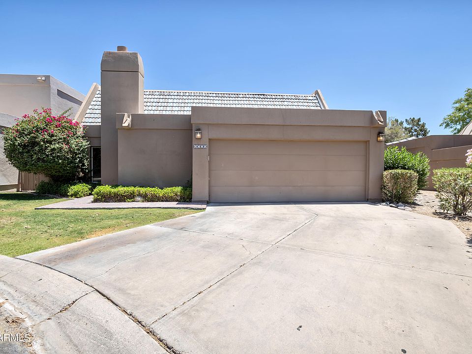 Lovely open floorplan home on the golf course with trees for privacy. Light and bright with travertine flooring and white kitchen. New pavers in large yard, two car garage and quiet corner location. Huge master suite with built-ins. Gated community for security in this prestigious section of the Arizona Biltmore community! Please note that this section of homes does not have a community pool.