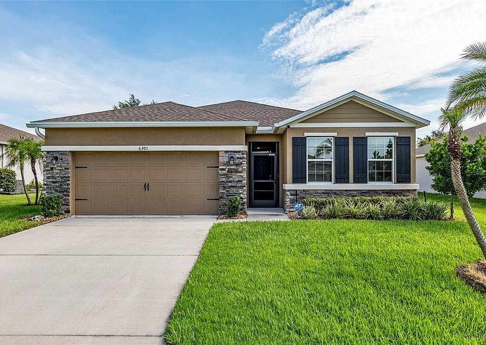 Introducing a stunning new listing perfect for those seeking sophistication and comfort within a vibrant 55+ community. This elegant home boasts 2,032 square feet of thoughtfully designed living space, featuring four well-appointed bedrooms and two pristine bathrooms. The delightfully open floor plan ensures connectivity and ease of movement throughout the living, dining, and kitchen areas. The heart of this home is a modern kitchen equipped with granite countertops, spotless stainless steel appliances, and chic white cabinetry. Both aesthetically pleasing and functional, the kitchen area seamlessly transitions into a generous living space accentuated by high ceilings that amplify both light and airiness. Step into comfort with plush carpeting in all bedrooms, including the serene primary bedroom. This bedroom promises a restful retreat with ample walk-in closets and an en-suite bathroom. The bathroom features dual sinks, granite countertops, and a spacious walk-in shower. Entertaining or unwinding is a breeze in the expansive screen-enclosed lanai, offering a scenic extension of the living space perfect for enjoying Florida’s year-round bounty of sunshine. This home also features a two-car garage with an epoxy floor. Residents of JB Ranch enjoy access to exceptional amenities, including a resort-style pool, gym, clubhouse facilities with a kitchen, meeting rooms, and Pickleball. All this is a stone’s throw away from conveniences such as the nearby Publix Super Market and the Cherrywood Country Club. Embrace a lifestyle of comfort and community in this flawless new home.