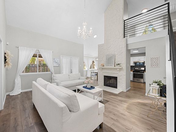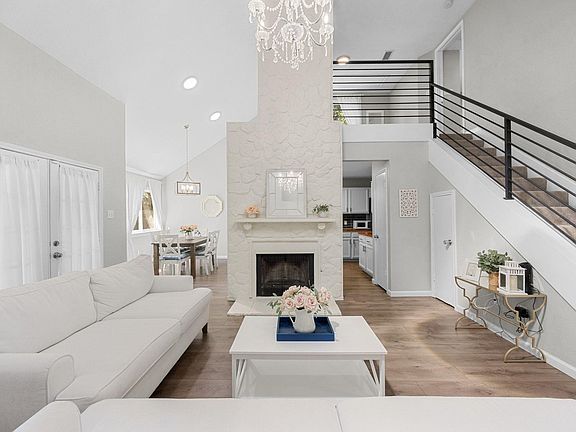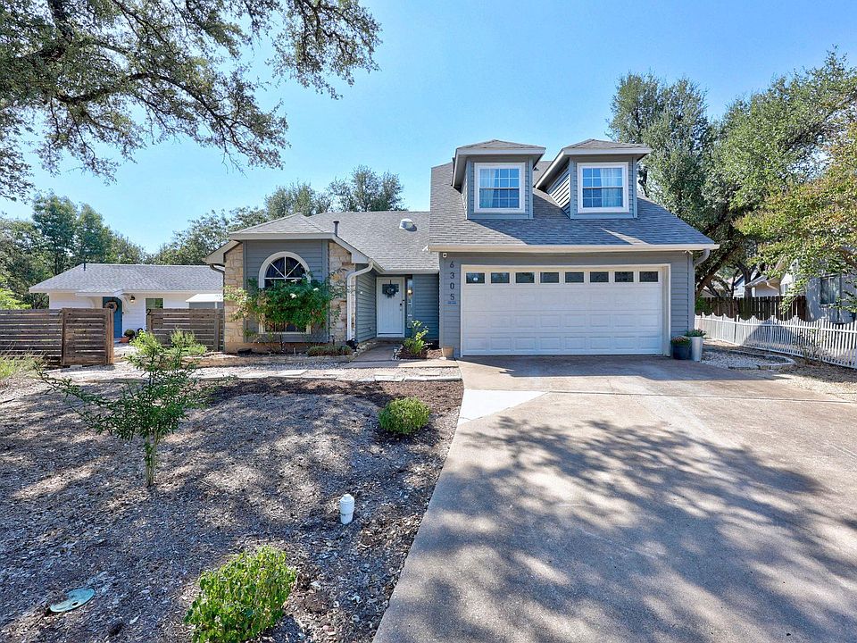 Welcome to 6305 Weeks Cove, a beautifully updated property offering the best of both worlds — a stylishly refreshed main home and a newly built casita, perfectly situated on a .20-acre lot in Austin’s sought-after Milwood neighborhood. The main home (1,600 sq ft, built 1984) features 3 bedrooms and 2 full baths, with a bright open layout, vaulted ceilings, laminate flooring, and a stone fireplace as the centerpiece. The kitchen boasts rich wood countertops, deep-blue subway tile backsplash, and stainless-steel appliances, flowing seamlessly into the dining and living areas. Upstairs, a private bedroom with loft/flex space offers the perfect setting for a reading nook, home office, or second living area. The primary suite is a peaceful retreat with French doors leading to the backyard, vaulted ceilings, and elegant touches like chandelier lighting and a serene neutral palette. The ensuite bath features a large vanity, frameless walk-in shower, and patterned designer tile floors, creating a bright, spa-like atmosphere. The casita (456 sq ft, built 2021) mirrors the same attention to detail with vaulted ceilings, luxury vinyl flooring, a coffee/beverage bar, and a stacked washer/dryer tucked behind a sliding barn door. The stylish bath showcases brass fixtures and custom tile work — ideal for guests, short-term rentals, or multi-generational living. Enjoy the private backyard oasis with mature trees, garden paths, and peaceful outdoor spaces. Zoned to Round Rock ISD’s top-rated Jollyville Elementary, Canyon Vista Middle, and Westwood High, this home offers flexibility, character, and a prime North Austin location.