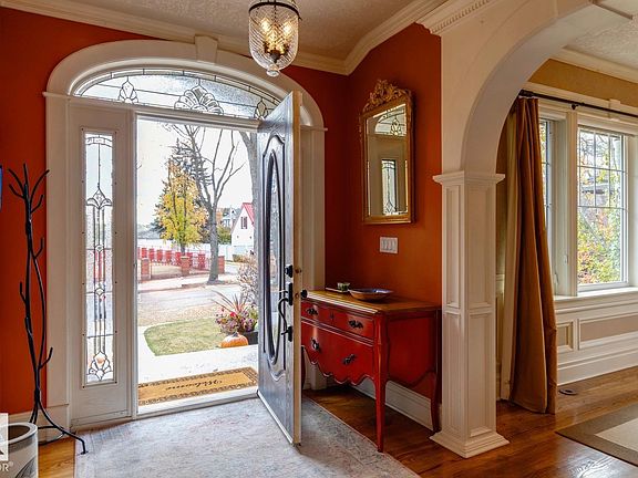 Stunning 5000+ sq.ft. 6-bed, 7-bath luxury estate in Edmonton’s prestigious Highlands, one of the city's top 10 historical neighborhoods. This historic home has undergone a million-dollar transformation—stripped to the studs and rebuilt with a new 9' R50 ICF foundation. Old-world charm meets modern efficiency with a chef’s kitchen, formal living and dining rooms, spa-like master retreat, loft space with full bedroom + full bathroom, and even a dog shower. High-end finishes include granite, slate, travertine, and hardwood, with custom mouldings, solid core doors, and detailed trim throughout. Double insulation, gated driveway, triple garage, and beautifully landscaped yard add to the appeal. A rare opportunity to own a fully restored historic gem in one of Edmonton’s most iconic communities.