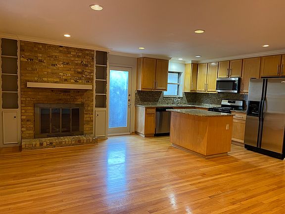 Spacious Updated Half Duplex in Lakewood. Discover comfort and convenience in this spacious half duplex located in the desirable Lakewood area. Featuring two generous living areas and a cozy wood-burning fireplace, this home offers beautiful hardwood floors throughout and an open, modern layout. The large, updated kitchen is a chef's delight with granite countertops, an island, stainless steel appliances, and includes a refrigerator, washer, and dryer for added convenience. Both bedrooms are oversized with walk-in closets and have access to two full baths. Enjoy the privacy of a fenced backyard patio perfect for relaxing or entertaining along with a sprinkler system to keep your lawn looking its best. A one-car garage adds extra storage and security. Ideally located with easy access to Northwest Highway, Old Town shopping center, Central Market, and scenic White Rock Lake. Yearly lease, non-aggressive breed of dogs okay, no cats. No smoking, no water beds.