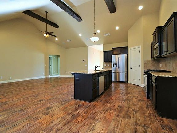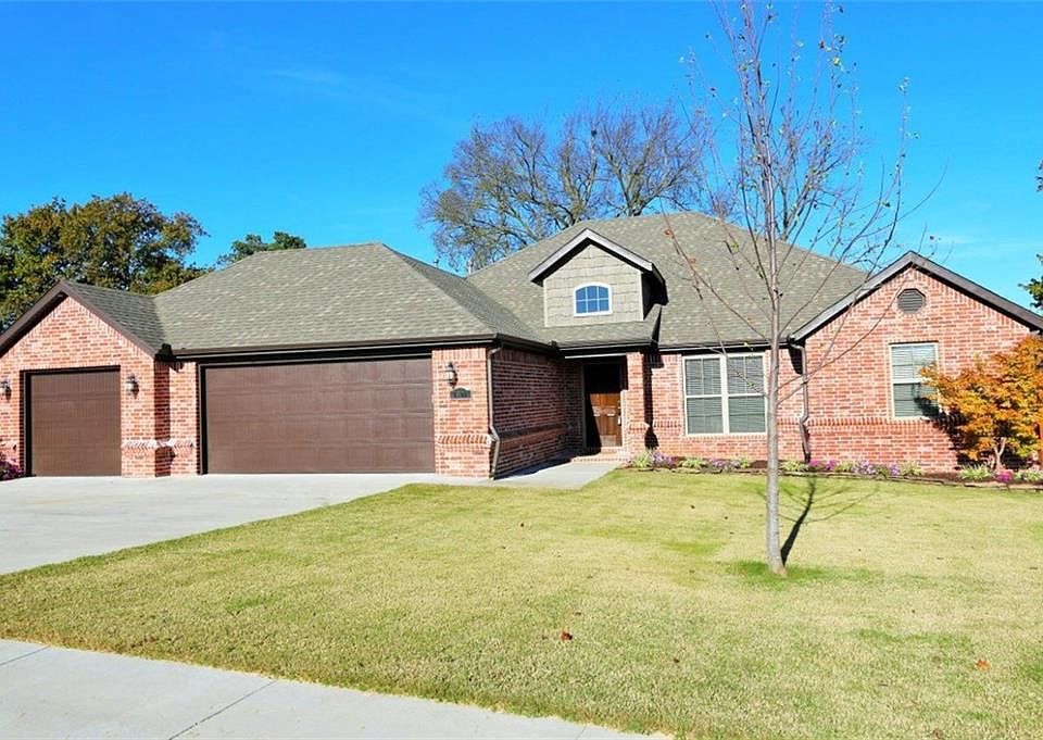 Affordable privacy in this all brick one level home on a double lot! LED lighting in garage with custom cabinetry. Custom rock landscape beds w/ lighting all around. Large covered deck. Beautiful interior finishes including beams on ceiling, lovely wood floors, granite, fully tiled showers, and stainless appliances! Like New!