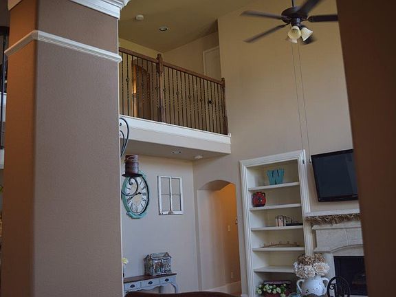 Barcelona W/Stone,Brick Entry,Tech-Shield!Environments For Living!3 Car Garage!Huge Covered Patio!Gone With The Wind Iron Stairway!2 Story Rotunda!Large Tile Flrs!Roman Columns,Art-Niches,Rounded Corners!Formal Dining!Butler Pantry!Gourmet Kitchen W/Eat-In-Island,Granite Counters,Tall Cabinets,Built-In -Appliances,Undermount Sink!Tile Flrs!Master W/High Coffered Ceiling,Corner Garden Tub,Glass Shower W/Seat,His & Her Private Vanities W/Granite Counters!Media & Game Rm!Granite in all Bathrooms, Landscaped back yard with large stone patio and Firepit.
