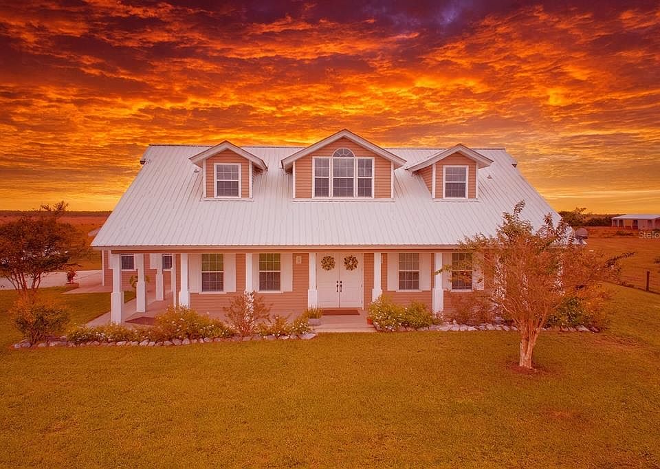 UNDER CONTRACT WITH KICK OUT CLAUSE - Welcome Home to this picturesque two-story farmhouse, perfectly placed on 5 fully fenced in acres of land offering serene pasture views in every direction! Located in the peaceful neighborhood of Zolfo Springs, FL and built in 2009 with a combination of frame/concrete block construction - this home gives timeless charm with thoughtful details throughout. This beauty welcomes you with a spacious wrap-around front porch and double doorway entry. Walking in, you will immediately feel ‘safe and at home’. The formal dining room is immediately to your left adjacent to the kitchen. The gourmet kitchen is a showstopper equipped with granite countertops, white shaker-style cabinetry, high-end stainless-steel appliances, and a center island. Next to the kitchen is a super convenient large indoor utility room with an additional entryway into the home, plenty of cabinetry, a utility sink, as well as access to the attached oversized two-car garage. The main living areas feature soaring cathedral ceilings, a striking wood-burning stone fireplace, breakfast nook, and a convenient powder room for guests. The downstairs primary suite offers a spacious walk-in closet and a luxurious en-suite bath with dual vanities, a jetted tub, a fully tiled walk-in shower, and a solid-surface counter vanity. Upstairs, you’ll find two additional bedrooms, a full bathroom with a shower/tub combo, plus a centrally located versatile bonus room ideal for a home office, hobby space, or playroom! The metal roof was replaced in 2018, 2 new HVAC systems have been installed, both offering peace of mind for years to come. Outside, the property is designed for country living at its finest. The separate back porch invites you to relax and enjoy the peaceful surroundings. The land is cross-fenced with wire pastures and an inner perimeter of post-and-board fencing around the home. A gated driveway leads you in, and a picturesque pond sits within the pasture—perfect for raising certain animals within county allowances or simply enjoying the view. With its rustic charm, modern conveniences, and idyllic surroundings, this property is a rare opportunity for anyone seeking peaceful country living with room to grow - it is one that shouldn’t be passed up!