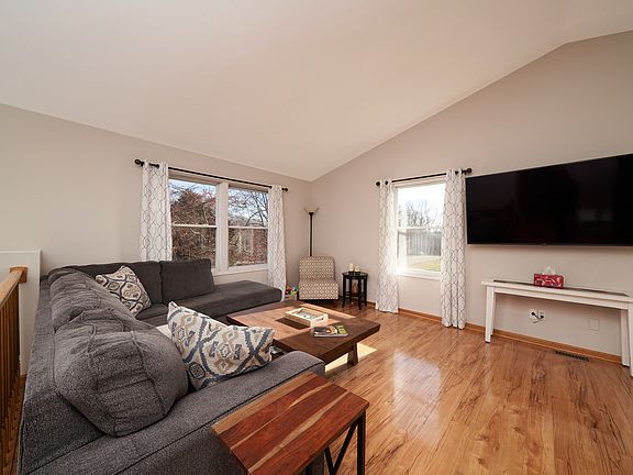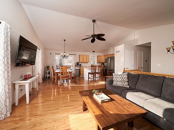 Immaculately maintained raised ranch with an open concept, boasting 3 bedrooms and 2 full baths on the main floor. The potential for a 4th bedroom exists in the lower level. Vaulted ceilings in the living room/kitchen create a luminous ambiance, complemented by laminate flooring throughout. The kitchen showcases stainless steel appliances, a breakfast bar island, and seamless connectivity to the main living space-ideal for hosting gatherings. French doors lead from the dining area to an elevated deck. The primary bedroom features a spacious closet and an updated private bath with a jetted tub. The property includes a spacious yard, an oversized 2 1/2 car garage with ample storage, and an outdoor shed. Recent updates encompass a new roof, gutters & downspouts (2022), cedar deck (2021), water heater (2022), paint in common areas (2023), primary bath renovation (2023), water filtration system (2023), pressurized well tank (2022), water softener (2023), ejector pump (2023), septic system pumped (2021) & A/C (2007). Enjoy the company of wonderful neighbors, access to excellent schools, and lake rights to Silver Lake through one of the beautiful beaches.