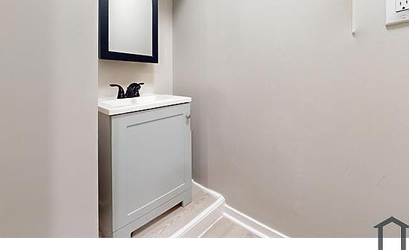 Primary bedroomTwo bathroomsWhite cabinetryLight-colored flooringModern kitchenStainless steel appliances
