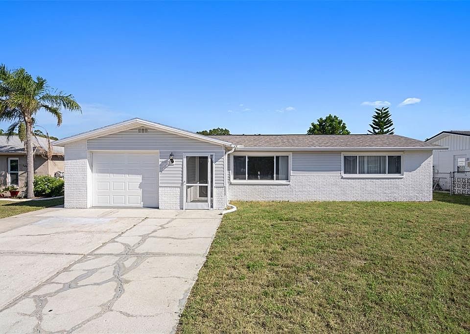 This home is truly move in ready, immaculate and well maintained from the inside out. Very spacious floor plan with new LVP flooring throughout the home, and tile in the office and bathrooms. Enter into the great room with open living room and dining room, to the left you will find the remodeled kitchen with updated cabinets, quartz countertops and newer appliances: 2025 New stove, 2023 Dishwasher, Microwave, side by side refrigerator 2023. Space for a dinette table, pantry, family room (owner reports that there was a fireplace, which can be reopened if desired), and step down into office/bonus room. The bedrooms are on the opposite side of the home. All three bedrooms are VERY large. The master bedroom has double closets, and en suite bath with huge walk in shower, updated vanity, mirror and lighting. The second and third bedrooms are also large with good sized closets. The guest bath is in the hall and offers a tub/shower, updated vanity, mirror and lighting. There are two hall closets for more storage. Garage has painted floor, washer and dryer hook up, garage door opener and side garage storm door. Oversized garage and extra wide driveway (could fit two normal size cars side by side). Neighbors on each side have fencing so it would be easy to connect small portions to provide a fenced in yard. More updates: New roof 8-2025, New LVP flooring 2025, New interior paint 2025, Ext paint approx 2022. Hurricane windows most of home 2023 (Living room and primary bedroom may not be Impact rated). Tile in bath and office. Vinyl in all other rooms. AC approx 2016 (per serial number) and Hot water mfg date 7/2008 (label). Close to all conveniences. Shopping, Medical, Restaurants, Beaches. Don't miss this one- IT WILL NOT LAST LONG.