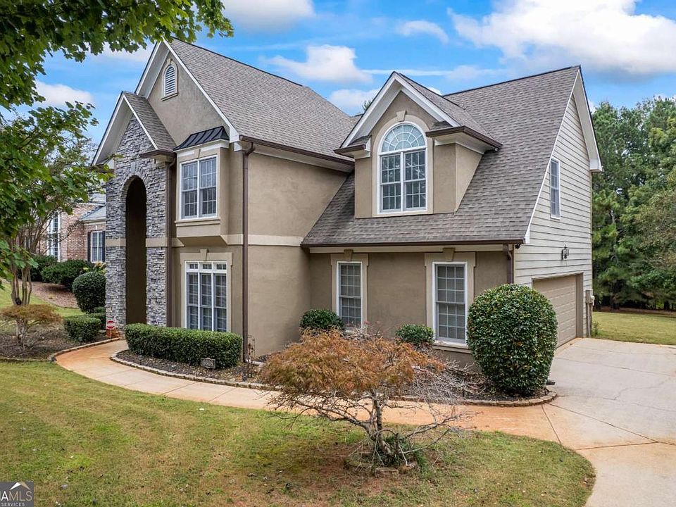 Welcome home to this beautifully maintained stone-front residence located in the highly sought-after Four Seasons on Lake Lanier community in South Hall. Nestled on a large, level lot with a side-entry garage and built-in cabinetry, this home offers exceptional space, style, and care throughout. Step inside the two-story foyer to find gleaming bamboo flooring on the main level, a formal living room and dining room, and a bright, open great room featuring a marble fireplace and wet bar. The eat-in kitchen has been completely updated with soft-close cabinetry, granite countertops, tile backsplash, and stainless steel appliances, all designed to blend everyday functionality with timeless appeal. A convenient half bath is also located on the main level. Upstairs, you'll find a spacious laundry room for easy access and large secondary bedrooms that share a generous hall bath with double vanities. The primary suite is a true retreat with trey ceilings, a bright sitting area, and three closets. The master bath includes a large double vanity with abundant counterspace, a whirlpool tub, and a separate shower. The home's thoughtful layout provides over 2,500 square feet of comfortable living space, with much of it rarely used and impeccably maintained. The exterior is equally inviting with a level yard, wide driveway, and ample space between neighboring homes for added privacy. Both HVAC systems and the furnace have been replaced, and the septic system was pumped four years ago and re-checked last year. New gutters and gutter guards offer worry-free maintenance. Located in one of South Hall's most unique and lively neighborhoods, Four Seasons on Lanier offers large property lots, Lake Lanier access with a community dock and clubhouse, a swimming pool, tennis and pickleball courts, a dog park, a baseball field originally built for the movie Blended by Adam Sandler, and a stocked fishing pond. With frequent community events and an unbeatable location, this home truly combines the best of comfort, quality, and lakeside living.