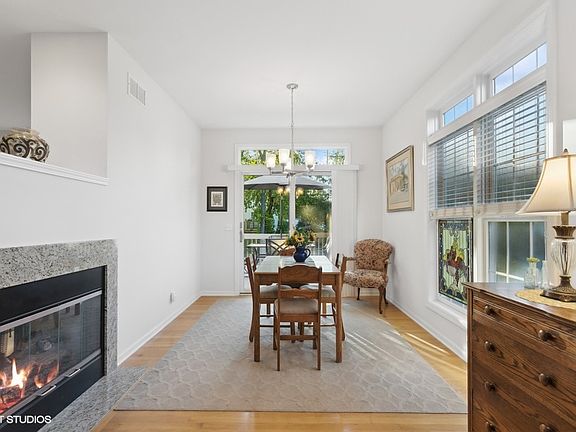 Beautiful 2 bed 2.5 bath townhome tucked away in a quiet community. This clean and crisp end unit offers abundant light, hardwood floors though out the main level and sliding glass door leading to a private deck overlooking well manicured green space. A see through fireplace separates the cozy family room and sun filled dining room. The kitchen, which is open to the family room, boasts granite countertops, generous cabinet space, new stainless steel appliances and an eat in area. Upstairs you will find a gorgeous loft perfect for a home office or additional living space, second bedroom, laundry room, full bath as wells as a primary suite featuring walk in closet, en-suite bath with jacuzzi tub and separate shower. With an attached two car garage and ample closet space, there is no shortage of storage. The large full unfinished lookout basement is roughed in for additional bathroom and ready to be made your own. This home is conveniently located near shopping, dining and expressways. This is clean well maintained townhome is move in ready! Welcome Home!