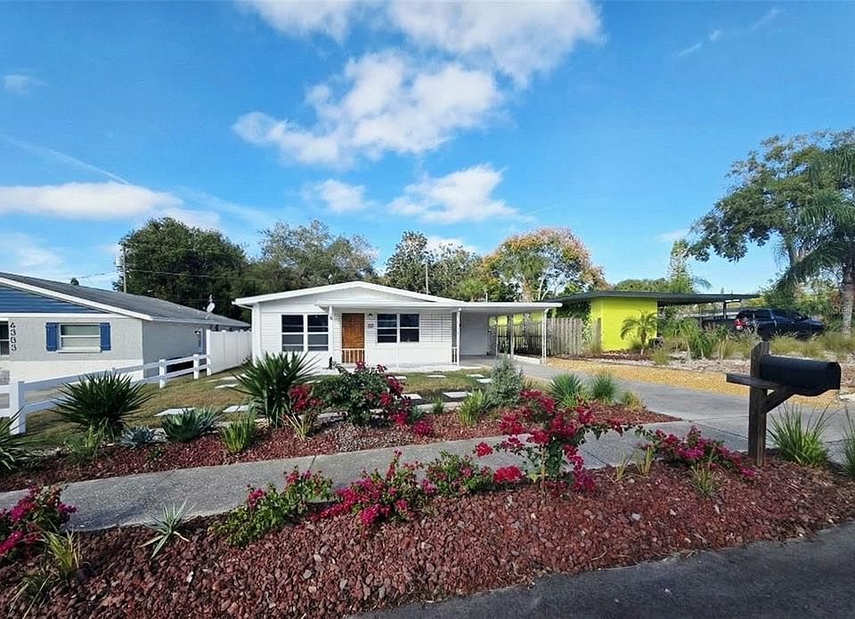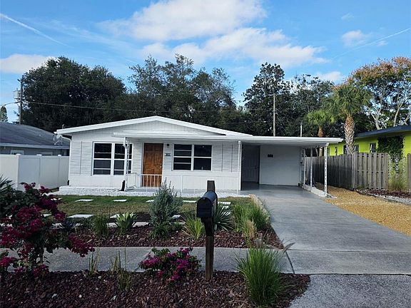 PRIME DOWNTOWN NPR LIVING! CHARMING 2 BED, 1 BATH BLOCK HOME WITH CARPORT & UNBEATABLE ACCESS Welcome home to the absolute heart of downtown New Port Richey! This is your chance to own a very well maintained, classic concrete block home that perfectly blends cozy, low-maintenance living with vibrant urban accessibility. Featuring 2 comfortable bedrooms and 1 full bathroom, this residence is designed for effortless Florida living. The interior offers excellent functionality, highlighted by a valuable, versatile bonus room. This enclosed porch, complete with charming jalousie windows, is a bright, airy space ideal for a dedicated home office, sunroom, or den. Practicality continues outside with a covered carport and a dedicated, enclosed laundry room/utility space at the rear, providing secure storage and keeping laundry out of the main house. Step outside to discover a truly serene setting. The yard is beautifully manicured and Florida-friendly, featuring an attractive, low-maintenance design complemented by various decorative rocks and stone features throughout the front and back. For ultimate parking flexibility, in addition to the front carport, the property benefits from convenient rear alley access, perfect for extra vehicles or storage needs. The location is simply unparalleled. Enjoy a lifestyle where everything is walkable: you're just a block or so from the Aquatic and Recreation Center, a few blocks from the Public Library, and right down the street from Sims Park, Orange Lake, the Pithlachascotee River, and public boat ramp. This is the epicenter of downtown life, offering year-round festivals, concerts, street and boat parades, along with quick access to the Richey Suncoast Theatre, diverse restaurants, and vibrant nightlife all throughout this golf cart friendly community. This highly desirable downtown gem is ready for its new owner! Schedule your showing promptly to take advantage of this opportunity!