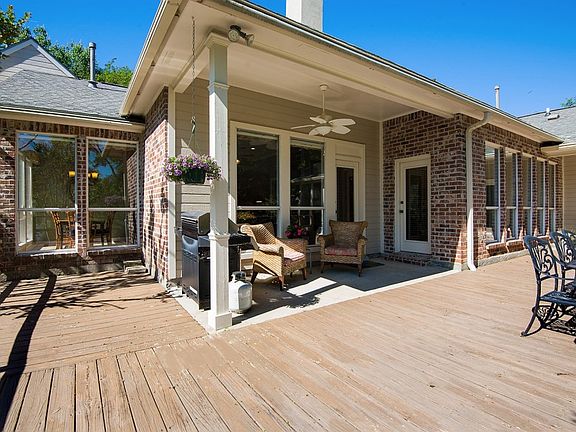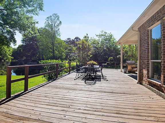 Beautiful water views from your windows. This lovingly maintained home in Lake at White Oak sitting on a large lot with lake view is priced below appraisal! This 4 bedroom/3 bath triple split home has approx 3316 sq. ft plus screened in sun room, large deck & media room. Nestled among the mature landscaping you will enter the French doors to a spacious formal dining area that flows openly into the family room. Appreciate the triple crown molding, gleaming wood floors, & abundance of windows that allow the natural light to flow into the space, & the awesome water view. Note the fireplace surrounded by built-ins & delight in the fact that there is another side to this fireplace in the sitting area off the kitchen, with more gorgeous outdoor views! Kitchen features cypress cabinets, slab granite, large center island, & two large pantry closets for your growing family. Appliances included: Jenn-Air glass convection cooktop, wall oven, dishwasher & microwave. Nearby laundry room and guest suite with full bath are adjacent to the garage entrance into the home. The media room could easily be used as part of a luxurious mother-in-law suite, your home office, man-cave, or could be separated to use as a workshop, because of the proximity to the garage. Retreat to the spacious master bedroom located off the back of the home with patio access & a private en-suite bath including two huge closets, dual vanities, separate shower, & soaker tub. Additional bedrooms situated down the front hall each have a walk-in closet plus Jack & Jill bath. Relax on the screened porch most of the year thanks to the cozy fireplace, rustic ceiling, & shade from big trees to keep it cooler in the summer. Covered grilling porch flows into a massive deck area to enjoy the sun rise over the water, or a shady place to have dinner with family & friends. Other amenities: enclosed 2 car garage, & added flooring to attic space. Neighborhood offers beautiful mature trees, walking/jogging trails.