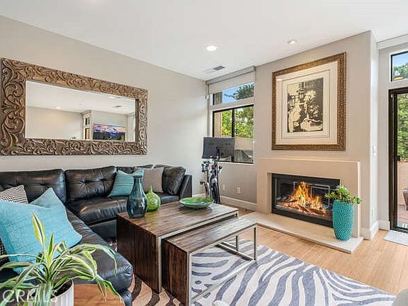 The living room and primary suite enjoy peaceful TREE-TOP VIEWS! Thoughtfully updated throughout, the home includes wood floors, renovated baths, a custom kitchen, and high ceilings. The living room, centered around a cozy fireplace, opens to a private patio PLUS A GRASSY YARD!