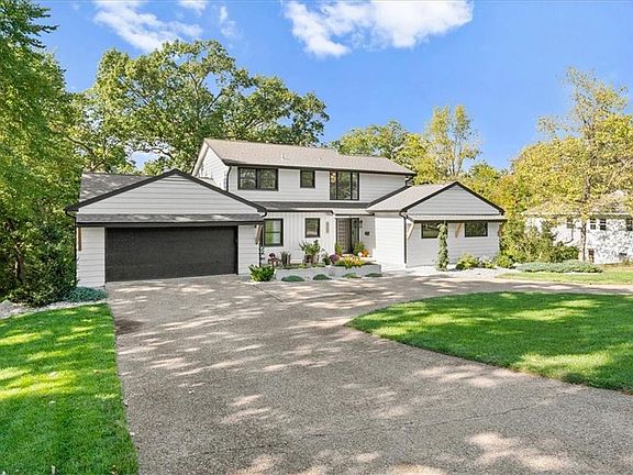 Top to Bottom Renovated Midcentury Home in Charming Sherwood Forest! With nearly 5,000 square feet, 5 true bedrooms, and 3/4 of an acre lot, this home feels larger than life. Sophisticated and transitional finishes - white oak hardwoods, slate tile, gold and matte black touches - carry a monochromatic modern look throughout. Step into the open concept kitchen featuring inset custom cabinetry, 10 foot marble island with corresponding backsplash, and stainless steel appliances to stay. Retreat to the oversized primary bedroom on the main floor with a spa-like bathroom and huge walk-in closet with built-ins. Added in the 1970s, the midcentury flair grows as you step upstairs into the vaulted loft, 2 large bedrooms including a custom built-in bunk bed and lovely bathroom with double vanity. Endless entertainment awaits you in the front courtyard, on the composite deck overlooking the back courtyard and serene wooded backdrop, or in the huge den and recreation room in the basement. Freshly renovated lower level features shaker cabinet wet bar with black negresco granite countertops, radiant flooring in the den, cozy new waffle carpet, and bank of built-in cabinets for bonus storage. Newer roof and zoned HVAC for added comfort, and new black interior/exterior Andersen windows throughout. No detail was overlooked in this rare and special Midcentury home - just move in and make it yours!