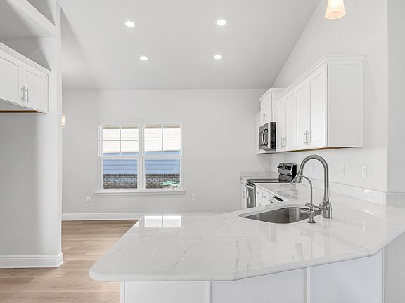 Brick skirtCraftsman style homeQuartz countertopsStylish black window framesMoen faucetsFully sodded yardGarden tub