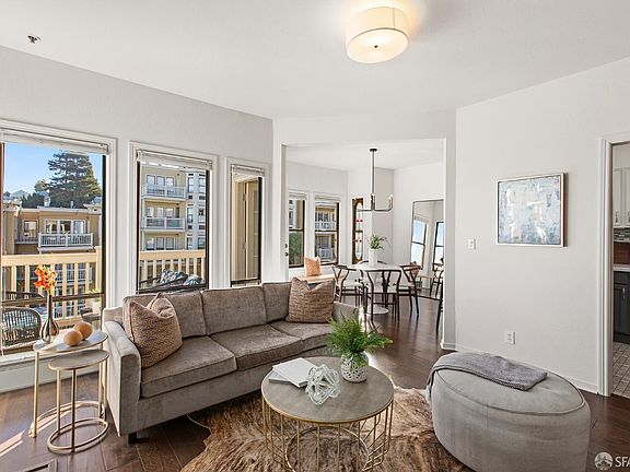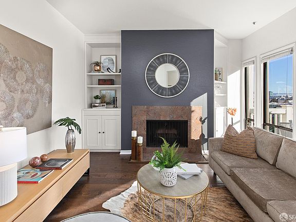 This light-filled, top-floor condo on Potrero Hill's north slope offers captivating downtown and Bay Bridge views. The spacious living room features a wood-burning fireplace, built-ins, and a wall of windows bathing the space with natural light. Off the dining area, a private deck showcases sweeping skyline views. The modern kitchen includes a breakfast bar, sleek tile backsplash, and ample cabinetry--perfect for everyday cooking or entertaining. A full bath with tub and in-unit Miele washer/dryer sit off the hall, along with a large closet. Two rear bedrooms include a primary suite with full bath and seating alcove; the second makes an ideal office or guest room. Additional highlights: wood floors, separate entry hall, storage, and one-car parking. Victoria Mews offers resort-style amenitiespool, tennis courts, gym, hot tub, sauna, clubhouse and landscaped grounds. 631 Carolina enjoys a fantastic neighborhood location, steps from Whole Foods and the shops and restaurants on 18th and 20th Streets. With easy access to Caltrain, freeways, Chase Center and bike-friendly routes to the Mission, Dogpatch and Mission Bay, this condo is ideal for urban dwellers who appreciate space, convenience and a peaceful setting.